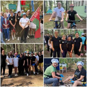 💊Команда нашего учреждения сменила медицинские халаты на спортивную форму и соревновалась с другими учреждения и области в традиционных туристических дисциплинах: преодолении полосы препятствий, перетягивании каната, а также в творческих конкурсах. Особой популярностью пользовались водные виды спорта и велосипедные гонки.